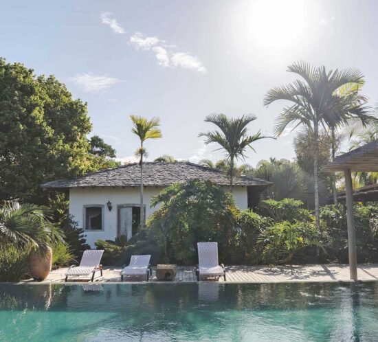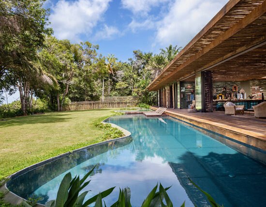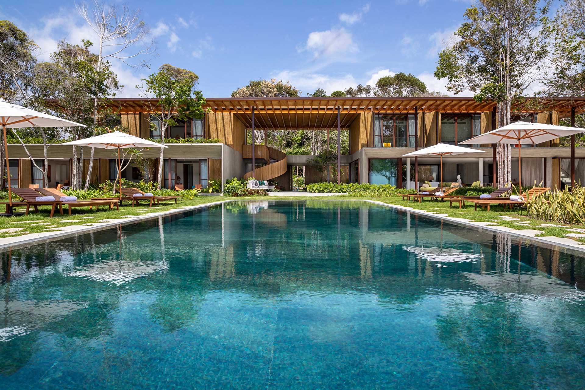 Localização: Itapororoca (a 600 m do Hotel Fasano) Capacidade Máxima: 16 pessoas (até 22 pessoas com a utilização das bicamas) Quartos: 7 suítes Perfil: Próximo a Praia Piscina: Sim Área total: 22.000 m² (12.000 m² de área de reserva) Área construída: 1.200 m² Casa Raízes