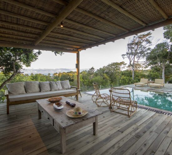 Localização: Centro – Condomínio Vale do Trancoso Área do terreno: 1 400 m2 Capacidade Máxima: 10 hóspedes Quartos: 5 Piscina: Sim (água salgada) Casa Villa Licuri