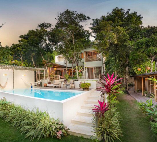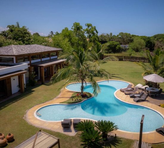 Localização: Praia do Espelho – Condomínio Outeiro das Brisas Capacidade Máxima: 10 hóspedes Quartos: 5 suítes Perfil: Condomínio Piscina: Sim Casa Aura